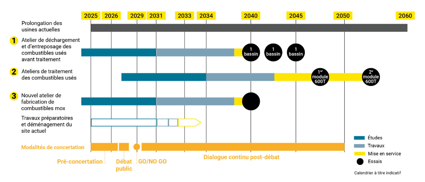 en service à partir de 2040 et permettraient de projeter l’activité de traitement-recyclage au-delà de 2100. En parallèle, un programme de pérennité-résilience est mis en place pour prolonger