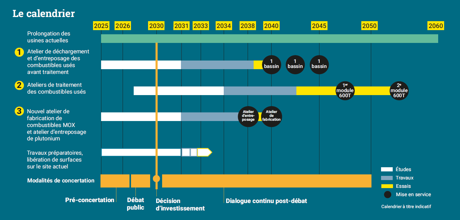 en service à partir de 2038 et permettraient de projeter l’activité de traitement-recyclage au-delà de 2100. En parallèle, un programme de pérennité-résilience est mis en place pour prolonger