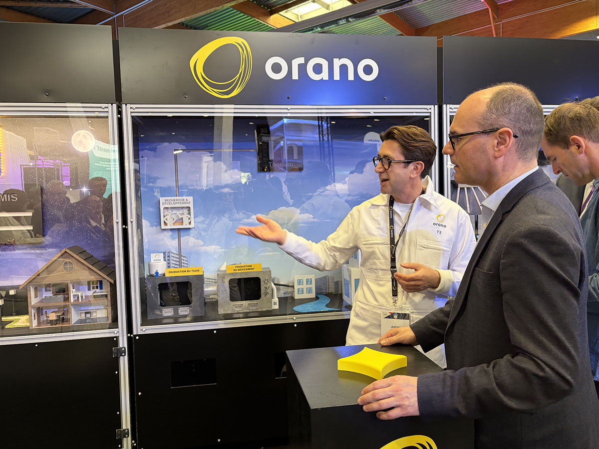Sur le stand, ils ont pu découvrir les activités d’Orano grâce à une machine conçue pour illustrer les trois contributions sociétales du groupe : l’énergie bas carbone, la santé et les industries d’avenir.